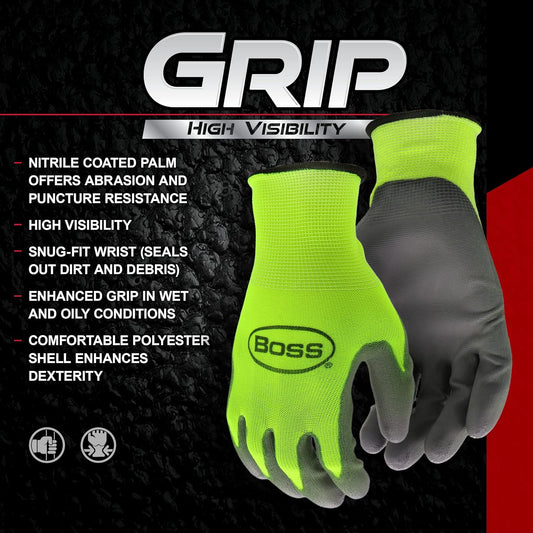 5-PACK WATER RESISTANT HIGH VISIBILITY ABRASION RESISTANT NITRILE WORK GLOVES WITH ENHANCED GRIP